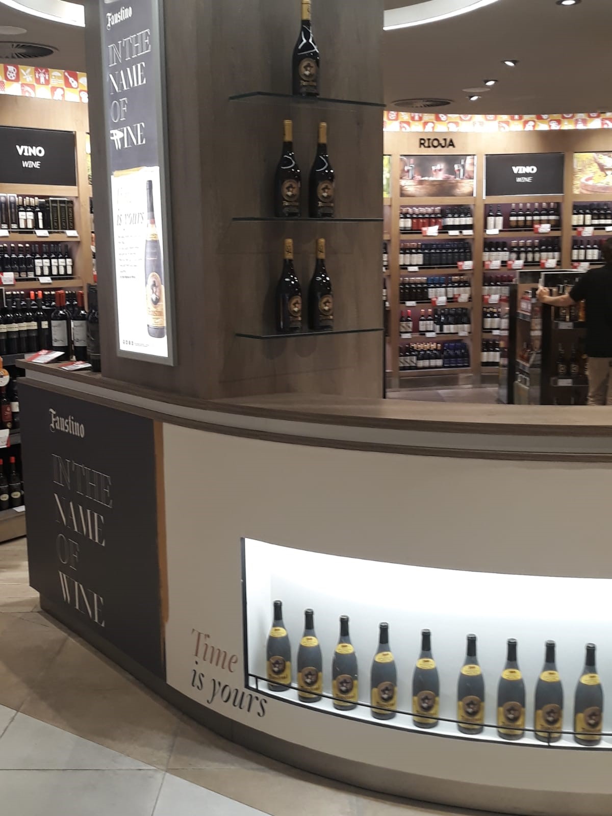 Grupo Faustino contaba con un espacio comercial en la tienda de la terminal T4 del Aeropuerto Adolfo Suárez de Madrid y dejaron en nuestras manos la producción e instalación de su Shop in Shop.