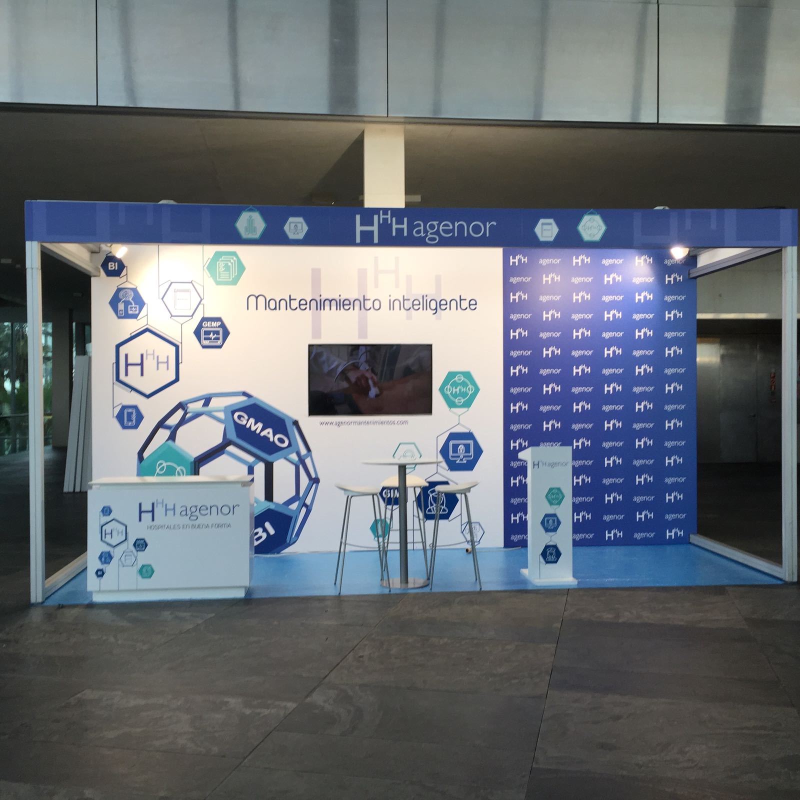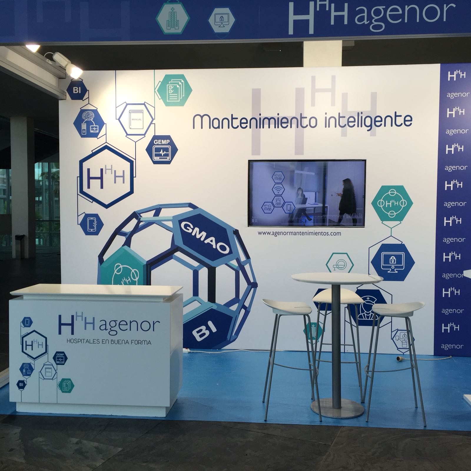 En sus stands en ferias profesionales, AGENOR siempre nos pide que, además de una inmersión total en su identidad corporativa, incorporemos algo tecnológico y singular que les haga destacar sobre otros expositores.